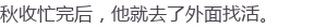 从十五六岁开始,每年这个时候他都会背着一身破旧的换洗衣服出门,一直做到入冬后。