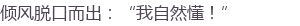 倾风成竹在胸地道:“照他的语气,他该说,‘倾风师妹,切莫忘了我对你的恩情,千万记得要来救我。’。”