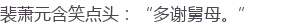 崔道嗣亲自将外甥领到他的书房,坐下后,夸了一番他三年前所立的战功,又问裴冀近况。裴萧元说伯父安好,转达裴冀对崔道嗣的问候,随后问舅母安。