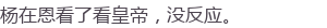 杨在恩听到身后异动,转头望见,大惊奔回,一边扶住皇帝,一边喊人。