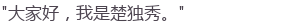 北河高声道:"下面欢迎我们的第一位演员--楚独秀!"
