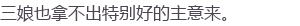 这可把三娘难住了,她平时主意挺多,可都是在琢磨该怎么玩耍,哪里知晓该怎么应对这种局面。