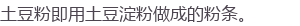 “削皮的生土豆碾成土豆泥,用水反复清洗,用麻布过滤后的水静置一夜,倒掉上面的清水,再将剩下浑浊的水晒干,剩余的粉末再碾细就是土豆淀粉。土豆淀粉加盐揉成面团,切成条状,就是土豆粉。”