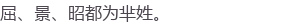屈氏乃楚武王的儿子瑕的封地屈邑为氏,景氏、昭氏是先祖以其君父楚景平王和楚昭王谥号为氏,都是春秋时分家。