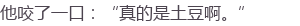 生土豆虽然能直接吃,但是不易消化,非常难吃,吃得朱襄眼泪都流出来了。