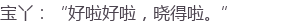 宝丫:“知道啦知道啦。”