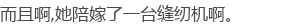 半年就给他一台缝纫机,他当然得掏心掏肺提点她,这是一个好姑娘啊,人特好。