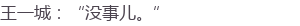 王一城:“你可别说了。”