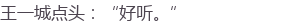 王一城:“啥,当然面儿上不能这么说,但是实际上还不就是这么个意思。”