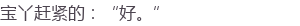 宝丫立刻开心起来,继续唱的更大声,两个小孩子一路唱回家,唱到了家门口。