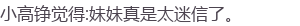 "也不知道我闺女考试考的怎么样?我就跟她说,不会没关系,上课认真听讲就可以。不过我闺女像我,从小就是个聪明的,估计肯定能考个好成绩。如果没考个好成绩是马虎了。她聪明是聪明的。我们家祖传的聪明。"