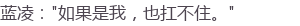 蓝凌:"我还没走多远,就听到有人争执,这不就立刻回来看热闹了?没想到是你。"