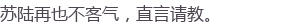 苏陆:“不是‘会是’,你就是,你现在教我不是教得很好?当然,我有师父了,我就这么一说。”